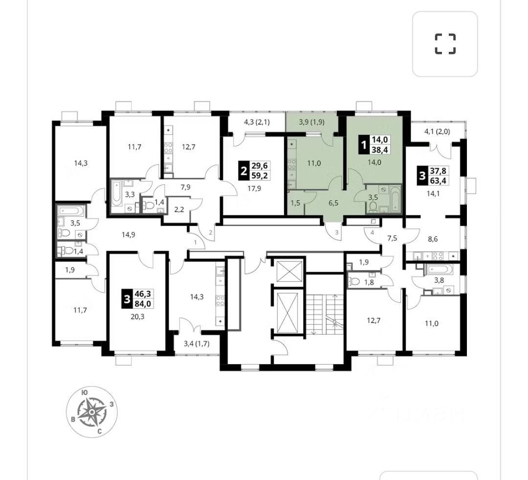 38 м² · Этаж 18 из 25
