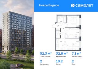 Предлагается 2-комнатная квартира комфорт-класса 52,28 кв.м в корпусе 18.2 на 2 этаже, в ЖК ''Новое Видное''Квартира без отделки. Доступность опции ''отделка'' и возможность комплектации мебелью и декором уточняйте у застройщика.Приобрести квартиру возможно по специальным акциям от застройщика, с текущими условиями акций можно ознакомиться в блоке ''Акций''.Цена динамическая и может отличаться, уточняйте актуальность у застройщика.Жилой комплекс ''Новое Видное'' — масштабный проект из 30 урбан-блоков, который находится рядом с Видновским лесопарком и в 8 км от МКАДа. В отделке фасадов — декоративный кирпич в белом, сером, бежевом и терракотовом оттенках. Такое сочетание оттенков словно нежная игра света на песчаной глади озера — тонкие линии и мягкие переливы создают волшебный узор, отражающий красоту природы. Жить здесь легко и комфортно: рядом с домом будет все важное и необходимое — от магазинов и кафе до плейхабов и набережной. В ''Новом Видном'' вы сможете слушать джазовые мотивы города и наслаждаться освежающей близостью леса.''Новое Видное'' — это: 1. До МКАДа — 8 км2. 20 минут ходьбы или 5 минут на авто до ж/д станции Калинина3. 25 минут на авто до аэропорта Домодедово 4. В будущем — прямой выезд на Каширское шоссе5. Видновский парк и Пуговичинский пруд рядом с домом 6. Музей-заповедник ''Горки Ленинские'' в нескольких минутах на авто 7. 12 минут на авто до конных клубов ''Задор'', ''Юланта'' и ''Казачий Дозор''8. 4 школы, 7 детских садов, поликлиника, станция скорой помощи9. Приватные дворы без машин10. Покет-парки для спокойного отдыха 11. Спортивные и игровые площадки12. Входы в корпуса без ступеней и высоких порогов13. Помещения для колясок в лобби14. Панорамное остекление балконов15. Велодорожки по всей территории квартала
