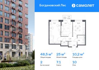 Строим кварталы для жизни с заботой о будущем. Предлагается 2-комнатная квартира комфорт-класса 48,47 кв.м в корпусе 7.1 на 10 этаже, в ЖК ''Богдановский Лес''Квартира без отделки. Доступность опции ''отделка'' и возможность комплектации мебелью и декором уточняйте у застройщика.Приобрести квартиру возможно по специальным акциям от застройщика, с текущими условиями акций можно ознакомиться в блоке ''Акций''.Цена динамическая и может отличаться, уточняйте актуальность у застройщика.''Богдановский Лес'' находится в 17 км от МКАДа, но после открытия Южно-Лыткаринской автодороги расстояние уменьшится до 14 км. Рядом с домом — Коробовский лесопарк. Все дома в ''Богдановском Лесу'' не выше 12 этажей и располагаются в форме полукруга. Такое решение дарит ощущение камерности. На фасадах — кирпич природных оттенков: от белого и бордо до серого и коричневого. В квартале будет все для жизни: поликлиника и спорткомплекс с бассейном, детские сады и школы. За пределами приватных дворов появятся игровые и спортивные кластеры. ''Богдановский Лес'' — это: 1. До МКАДа — 20 минут на машине, а после открытия Южно-Лыткаринской автодороги — 12 минут2. До станции метро ''Домодедовская'' — полчаса на машине3. Аэропорт Домодедово — в 35 минутах на машине4. Рядом — лес, реки Пахра и Людовна, Большой Людовинский пруд с зоной отдыха5. Экомаршрут в Коробовском лесопарке рядом с домом, который соединит кварталы: ''Пригород Лесное'', ''Горки Парк'' и ''Богдановский Лес''6. Национальный конный парк ''Русь'' и парк-отель ''Орловский'' в 1020 минутах пешком7. Аквапарк рядом с кварталом — в будущем на территории парк-отеля ''Орловский''8. Прогулочный маршрут через лесопарк9. Монолитные дома комфортной высоты — от 11 до 12 этажей10. 4 детских сада, 3 школы и поликлиника, торговый центр, спорткомплекс с бассейном 11. Воркаут-пространства и велопешеходный бульвар12. Многоуровневые паркинги в пешей доступности13. Планировки с постирочными комнатами, угловыми окнами с видами на лес