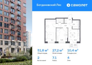 Строим кварталы для жизни с заботой о будущем. Предлагается 2-комнатная квартира комфорт-класса 51,8 кв.м в корпусе 7.1 на 4 этаже, в ЖК ''Богдановский Лес''Квартира без отделки. Доступность опции ''отделка'' и возможность комплектации мебелью и декором уточняйте у застройщика.Приобрести квартиру возможно по специальным акциям от застройщика, с текущими условиями акций можно ознакомиться в блоке ''Акций''.Цена динамическая и может отличаться, уточняйте актуальность у застройщика.''Богдановский Лес'' находится в 17 км от МКАДа, но после открытия Южно-Лыткаринской автодороги расстояние уменьшится до 14 км. Рядом с домом — Коробовский лесопарк. Все дома в ''Богдановском Лесу'' не выше 12 этажей и располагаются в форме полукруга. Такое решение дарит ощущение камерности. На фасадах — кирпич природных оттенков: от белого и бордо до серого и коричневого. В квартале будет все для жизни: поликлиника и спорткомплекс с бассейном, детские сады и школы. За пределами приватных дворов появятся игровые и спортивные кластеры. ''Богдановский Лес'' — это: 1. До МКАДа — 20 минут на машине, а после открытия Южно-Лыткаринской автодороги — 12 минут2. До станции метро ''Домодедовская'' — полчаса на машине3. Аэропорт Домодедово — в 35 минутах на машине4. Рядом — лес, реки Пахра и Людовна, Большой Людовинский пруд с зоной отдыха5. Экомаршрут в Коробовском лесопарке рядом с домом, который соединит кварталы: ''Пригород Лесное'', ''Горки Парк'' и ''Богдановский Лес''6. Национальный конный парк ''Русь'' и парк-отель ''Орловский'' в 1020 минутах пешком7. Аквапарк рядом с кварталом — в будущем на территории парк-отеля ''Орловский''8. Прогулочный маршрут через лесопарк9. Монолитные дома комфортной высоты — от 11 до 12 этажей10. 4 детских сада, 3 школы и поликлиника, торговый центр, спорткомплекс с бассейном 11. Воркаут-пространства и велопешеходный бульвар12. Многоуровневые паркинги в пешей доступности13. Планировки с постирочными комнатами, угловыми окнами с видами на лес
