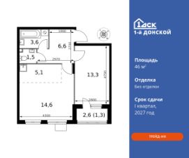 Максимальные скидки при 100% оплате.Trade-in вместо первоначального взноса - выгодно обменяйте вашу квартиру на новую!Прямая продажа от застройщика! Жилой Комплекс класса Комфорт плюс.Продаётся 2-к квартира номер 260 общей площадью 46.4 кв.м на 2-м этаже 24 этажного дома. Чистовая отделка.Особенности:- Квартира доступна к покупке в Trade-In.- Угловая планировка - больше пространства для ваших идей.- Увеличенное число окон- Окно в ванной - натуральное освещение для уюта и комфорта.- Евроформат - просторное и удобное жилье с отличной планировкой.- Возможность добавить спальное место - дополнительный комфорт для гостей.- Линейная кухня - функциональность и практичность в одном решении.- Стандартное количество квартир на этаже - оптимальный выбор для городской жизни.- Гардеробная - удобство для хранения и организации вещей.- Лоджия - уютное место для отдыха и тишины.- Вид из окна: соседняя секция- Вид из окна: парковка- МЦД5 в пешей доступности- Квартал с собственной набережной- Свои 2 детских сада и школаКвартира с чистовой отделкой. Раскройте свою индивидуальность в создании своего уникального проекта, а трудоемкий ремонт мы возьмем на себя! Вы идете в ногу со временем и предпочитаете современные, универсальные дизайнерские решения? Или вы любитель строгой лаконичной классики? Тогда наши интерьеры придутся вам по душе! Выбирайте то, что ближе лично Вам и реализуйте свои задумки вместе с нами!Расположение комплекса: Комплекс 1-й Донской расположен в 7 км от МКАД по трассе М-4 Дон. В нем сочетаются все плюсы комфортной городской среды и природного окружения. В проекте достаточно большой процент квартир, выходящих на 2-3 стороны света.Секции-маяки формируют у зданий визуальную L-форму, что придает застройке структуру и ритмику объемов. На ощущение динамики работает и разная этажность зданий.Теплая цветовая палитра фасадов отражает природу Дона. Вечерами дома преображаются благодаря архитектурной подсветке, выгодно выделяясь на городском фоне.Природа оказывает положительное влияние на человека на всех уровнях восприятия: через зрение, запахи, звуки, тактильные ощущения. Неподалеку от ЖК Первый Донской: Ермолинский парк, Видновский лесопарк, Жуковский парк.Транспортная доступность:Комплекс удобно расположен в 7 км от МКАД по трассе М-4 Дон (через Видное). Расстояние до Каширского шоссе составляет 12 км. Добраться до метро и центра Москвы позволяет развитая сеть маршрутов общественного наземного транспорта. Действующая ж/д станция Калинина Павелецкого направления в 15-17 минутах ходьбы (в будущем МЦД-5).Внутренняя инфраструктура:Проект 1-й Донской соседствует с бурно развивающимся районом, основная инфраструктура которого уже сложилась. В строительстве современных жилых комплексов в округе есть свои плюсы: здесь формируется продуманная и комфортная городская среда.Что касается внутренней инфраструктуры, на территории квартала будут расположены собственные муниципальные 2 детских садика и школа, которые помогут совмест