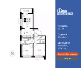Максимальные скидки при 100% оплате.Прямая продажа от застройщика! Семейный жилой район класса Комфорт ПлюсПродаётся 3-к квартира номер 632 общей площадью 62.4 кв.м. на 2-м этаже 22 этажного дома. Отделка Whitebox.Особенности:- Квартира доступна к покупке в Trade-In.- Распашная- Окно в ванной- Увеличенное число окон- Раздельный санузел- Гостевой санузел- Льготная ипотека- Пакет ''Умная квартира''- Гардеробная- ЛоджияКвартира с предчистовой отделкой (White box). Вам не придётся заниматься черновыми трудоёмкими работами, а чистовую отделку и дизайн сделаете по своему вкусу.Расположение комплекса: Сочетание свободного перемещения по внутреннней территории без машин и ощущения абсолютной безопасности благодаря надежным ограждениям - вот что отличает ЖК Южная Битца. На территории комплекса созданы все условия как для активного образа жизни, так и для спокойного времяпрепровождения. Свободно перемещайтесь по внутренней территории в безбарьерной среде! Продуманное зонирование во дворах позволяет отделить тихие зоны для родителей со спящими младенцами и тех, кто хочет почитать на свежем воздухе, от шумных игровых зон. Игровые зоны учитывают возраст детей. Площадки для детей старшего возраста вынесены за пределы дворов. Ощущение уютного дома должно начинаться с подъезда. Мы постарались предусмотреть все нюансы, чтобы наши лифты отвечали самым строгим современным требованиям. А наличие кладовых позволит вам поддерживать идеальный порядок и уют в вашей квартире!Транспортная доступность:В 3 км от МКАД в нескольких минутах езды до трех станций метро: Аннино, Бульвар Дмитрия Донского, улица Старокочаловская и станции МЦД2 - жд Бутово.Внутренняя инфраструктура:Для жителей жилого района ''Южная Битца'' доступна развитая инфраструктура близлежащих московских районов Чертаново, Южное, Бирюлёво Западное, Северное Бутово и Южное Бутово. Множество образовательных учреждений, объекты здравоохранения, торговые и развлекательные центры, кинотеатры, кафе, рестораны, парки. Цены указаны с учетом скидки.