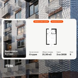 Продаётся квартира-студия площадью 20,7 кв.м на 6 этаже 25 этажного дома (Корпус 47, Секция 3) проекта ПИК Восточное Бутово. Светлый просторный подъезд на уровне земли, функциональная планировка, большие окна, предчистовая отделка. Жилой квартал ''Восточное Бутово'' расположен в 5 км от МКАД по Симферопольскому шоссе, в Ленинском районе Московской области. Это экологически благоприятное место по соседству с Бутовским лесопарком. В 25 минутах на машине - станции метро и МЦД ''Бутово''. В ''Восточном Бутово'' уже открылись пять детских садов из десяти запланированных и одна школа из четырёх. Внутри квартала будет две поликлиники, одна из которых уже работает. В проекте два пешеходных бульвара - по одному из них уже можно гулять и кататься на велосипеде. В закрытых дворах-парках не будет автомобилей - мы построим многоуровневый паркинг, чтобы сделать район ещё более комфортным и безопасным для жителей. Артикул 645926 (Застройщик ООО ''Лотан'')