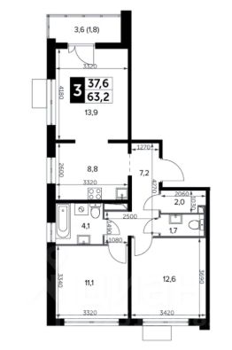 📚 Какая площадь трехкомнатных квартир?