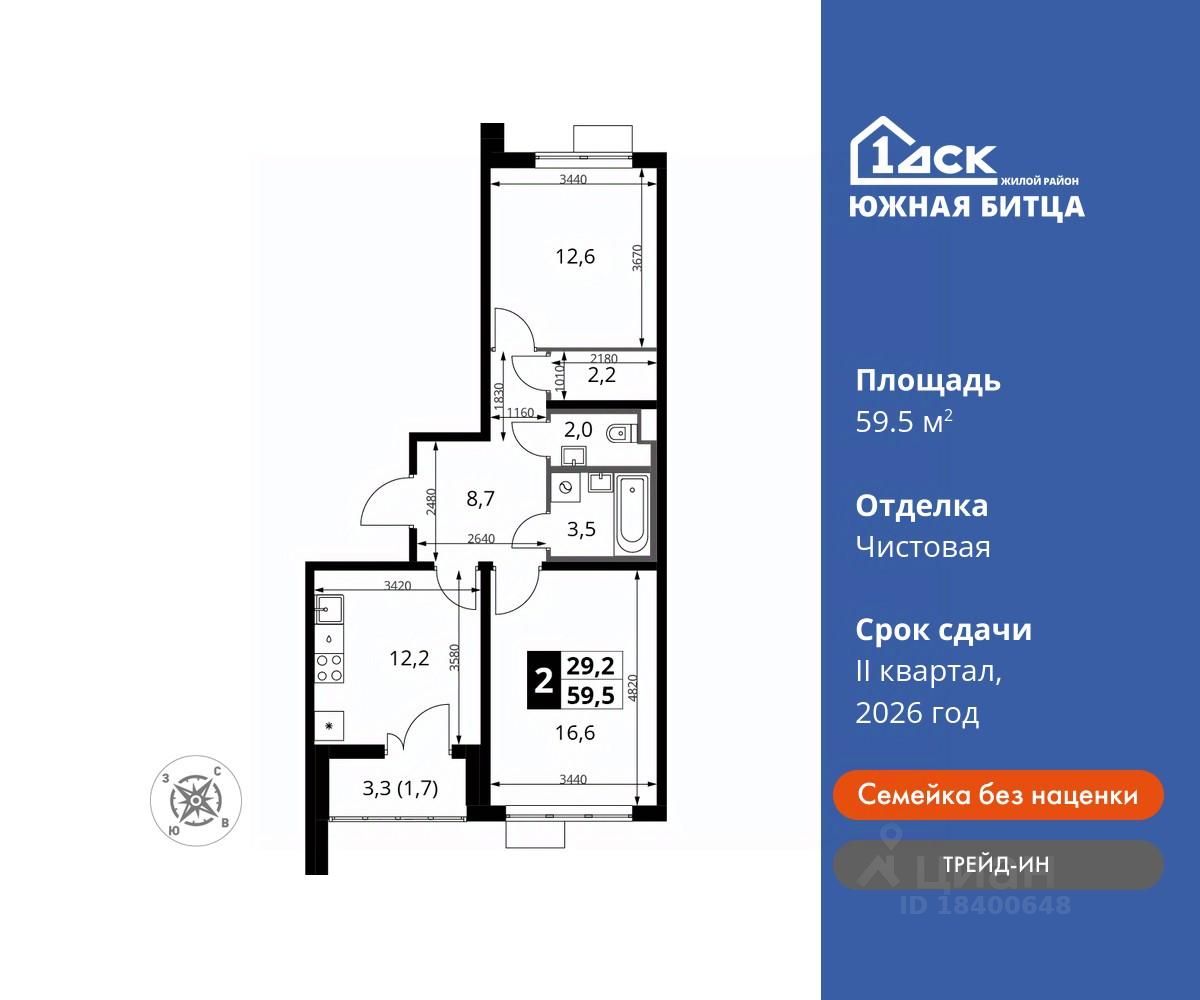продам 2-к, Южная Битца ЖК, 1016 779 000 ₽