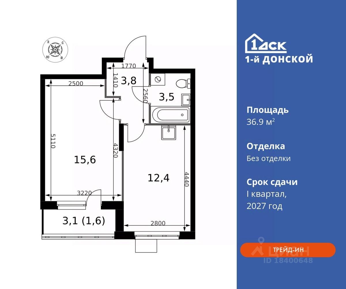 Максимальные скидки при 100% оплате. Trade-in вместо первоначального взноса - выгодно обменяйте вашу квартиру на новую! Прямая продажа от застройщика! Жилой Комплекс класса Комфорт плюс. Продаётся 1-к квартира номер 21 общей площадью 36.9 кв.м на 3-м этаже 24 этажного дома. Без отделки.