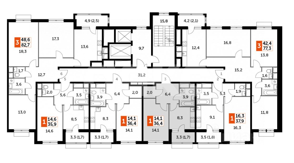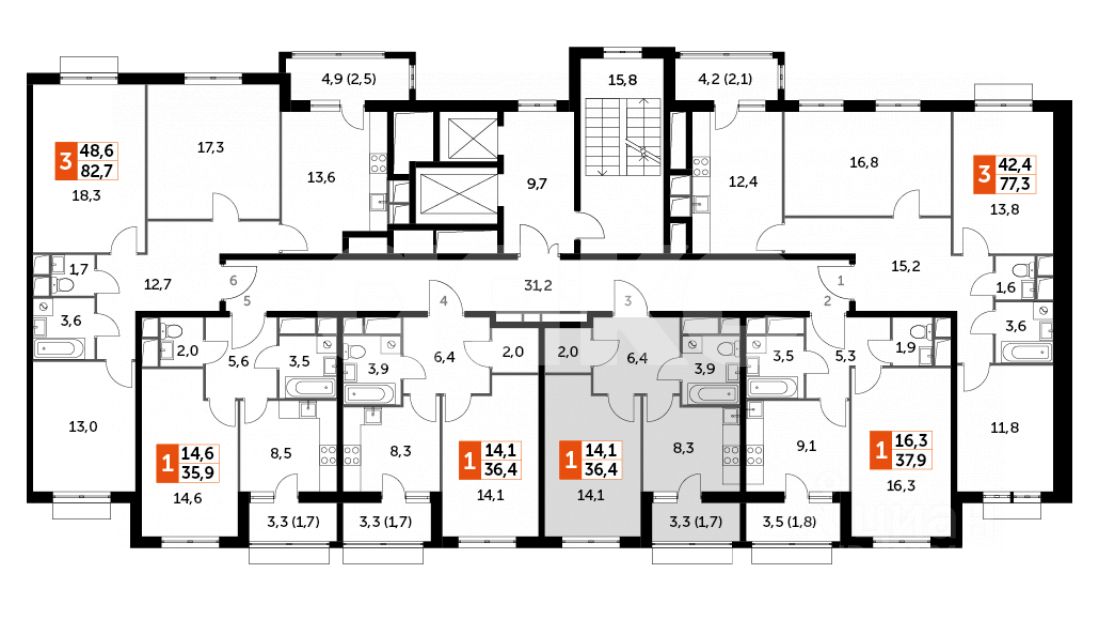 Общая площадь36,4 м2