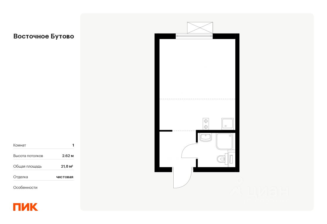 Продаётся квартира-студия площадью 21,8 кв.м на 5 этаже 16 этажного дома (Корпус 41, Секция 2) проекта ПИК Восточное Бутово. Светлый просторный подъезд на уровне земли, функциональная планировка, большие окна, .