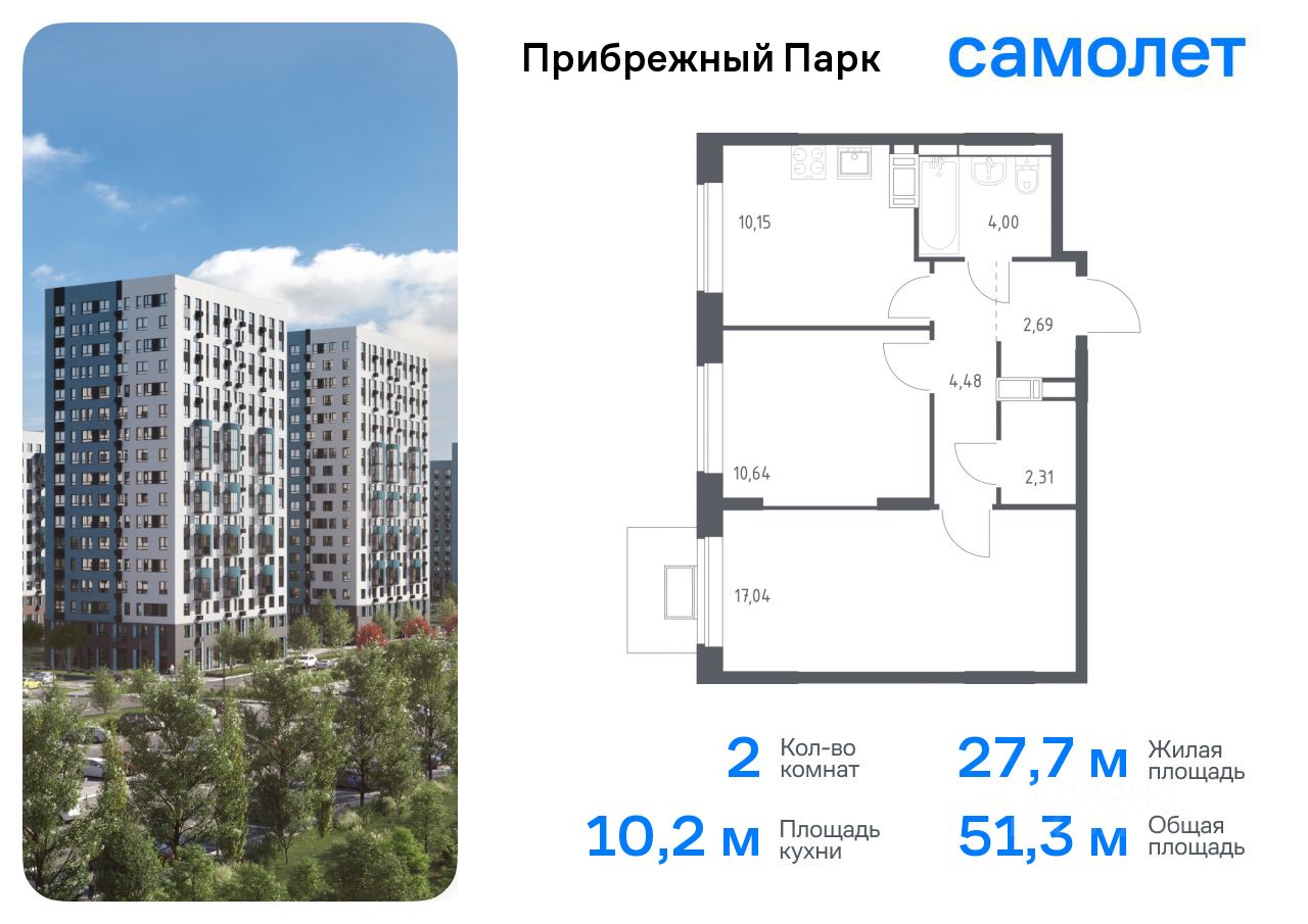 Предлагается 2-комнатная квартира комфорт-класса 51,31 кв.м в корпусе 9.2 на 12 этаже, в ЖК ''Прибрежный Парк'' Квартира с предчистовой отделкой. Доступность дополнительных опций уточняйте у застройщика.