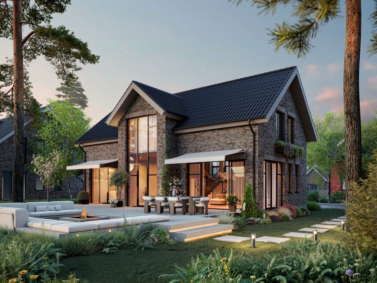 Уютный дом 337 площадью 180 кв. м. на участке 6 соток. Просторная планировка, современные материалы и панорамные окна.