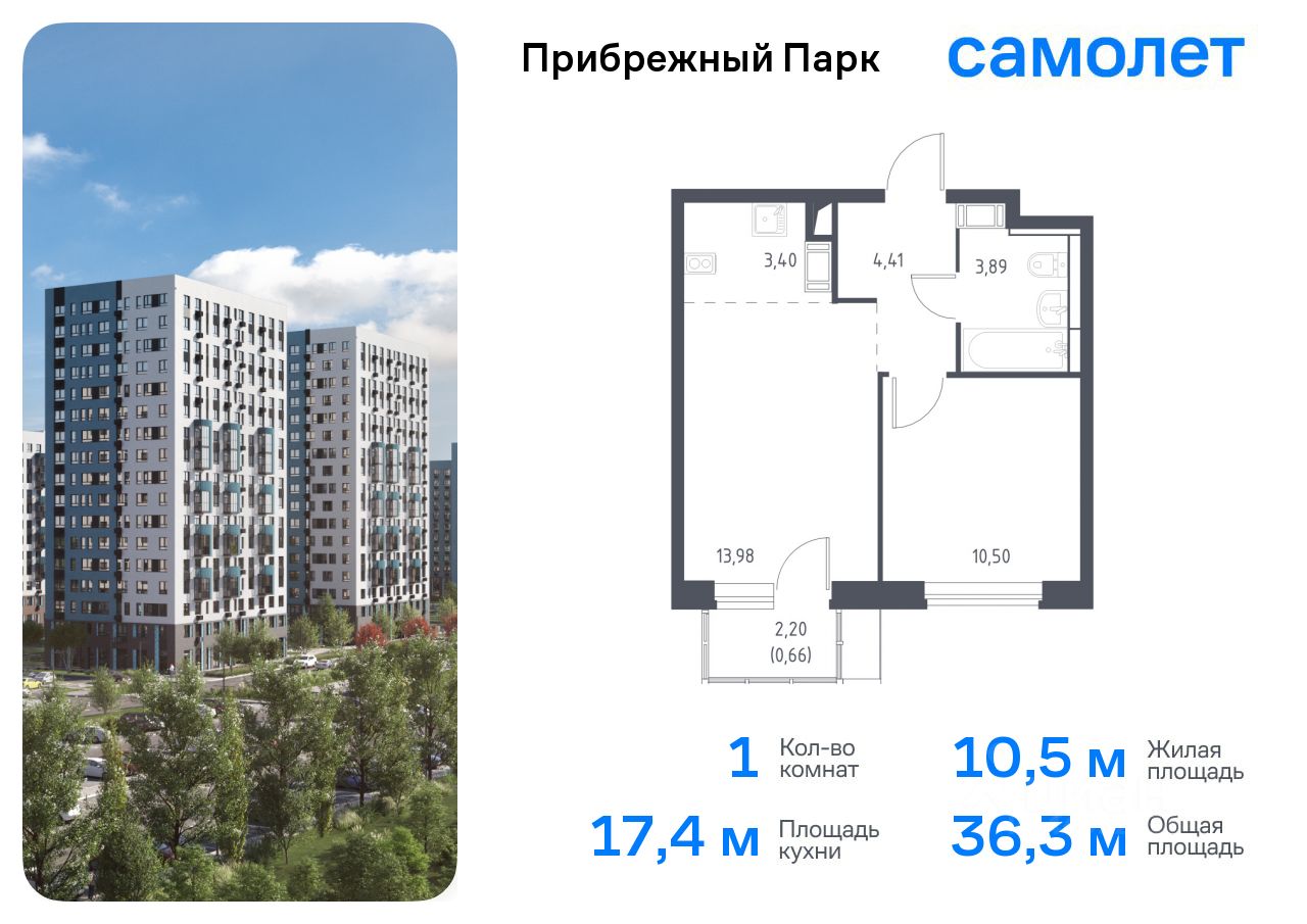 Предлагается 1-комнатная квартира комфорт-класса 36,3 кв.м в корпусе 6.1 на 8 этаже, в ЖК ''Прибрежный Парк'' Квартира с чистовой отделкой. Доступность дополнительных опций уточняйте у застройщика.