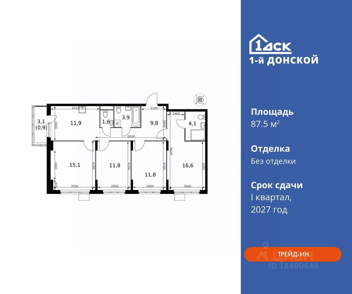 Максимальные скидки при 100% оплате. Trade-in вместо первоначального взноса - выгодно обменяйте вашу квартиру на новую! Прямая продажа от застройщика! Жилой Комплекс класса Комфорт плюс. Продаётся 4-к квартира номер 167 общей площадью 87.5 кв.м на 17-м этаже 24 этажного дома. Без отделки.