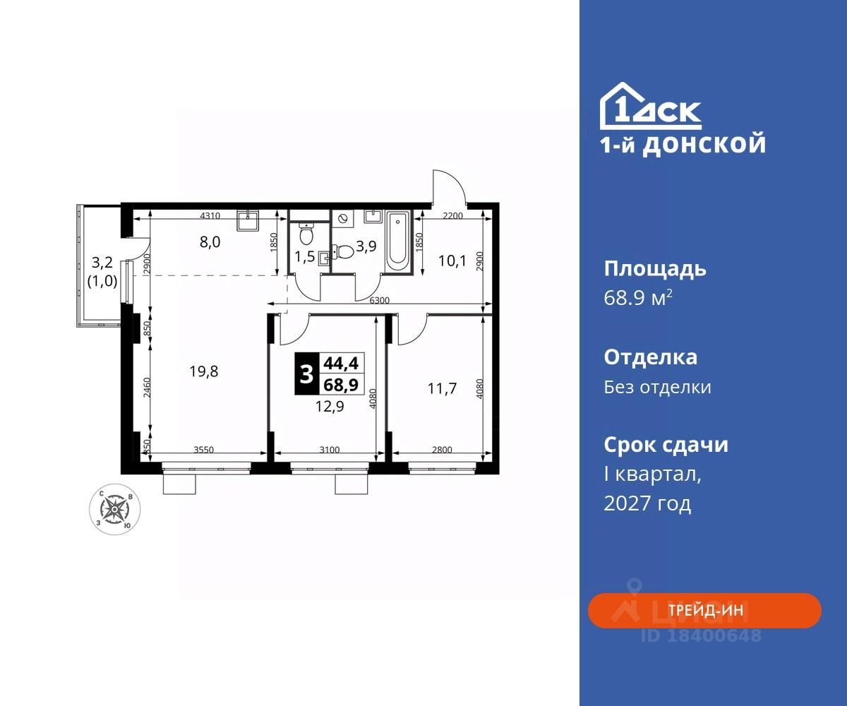 Общая площадь68,9 м2