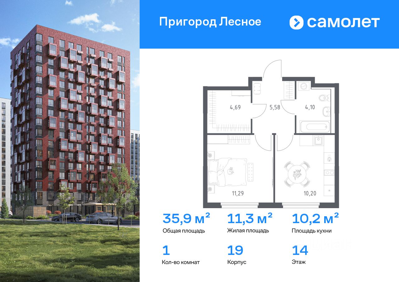 Строим кварталы для жизни с заботой о будущем. Предлагается 1-комнатная квартира комфорт-класса 35,86 кв.м в корпусе 19 на 14 этаже, в ЖК ''Пригород Лесное'' Квартира с чистовой отделкой. Доступность дополнительных опций уточняйте у застройщика.