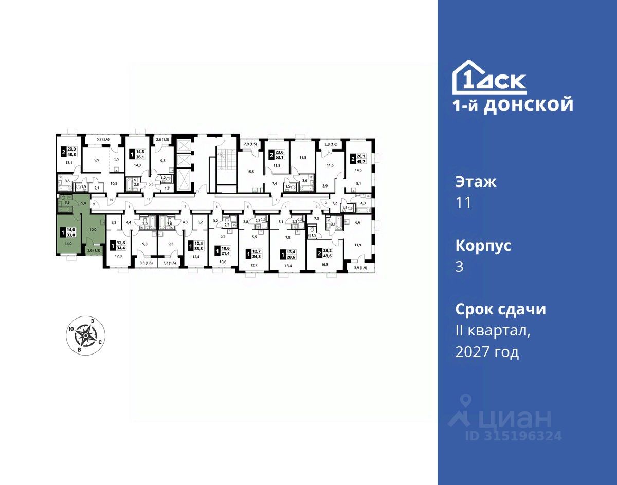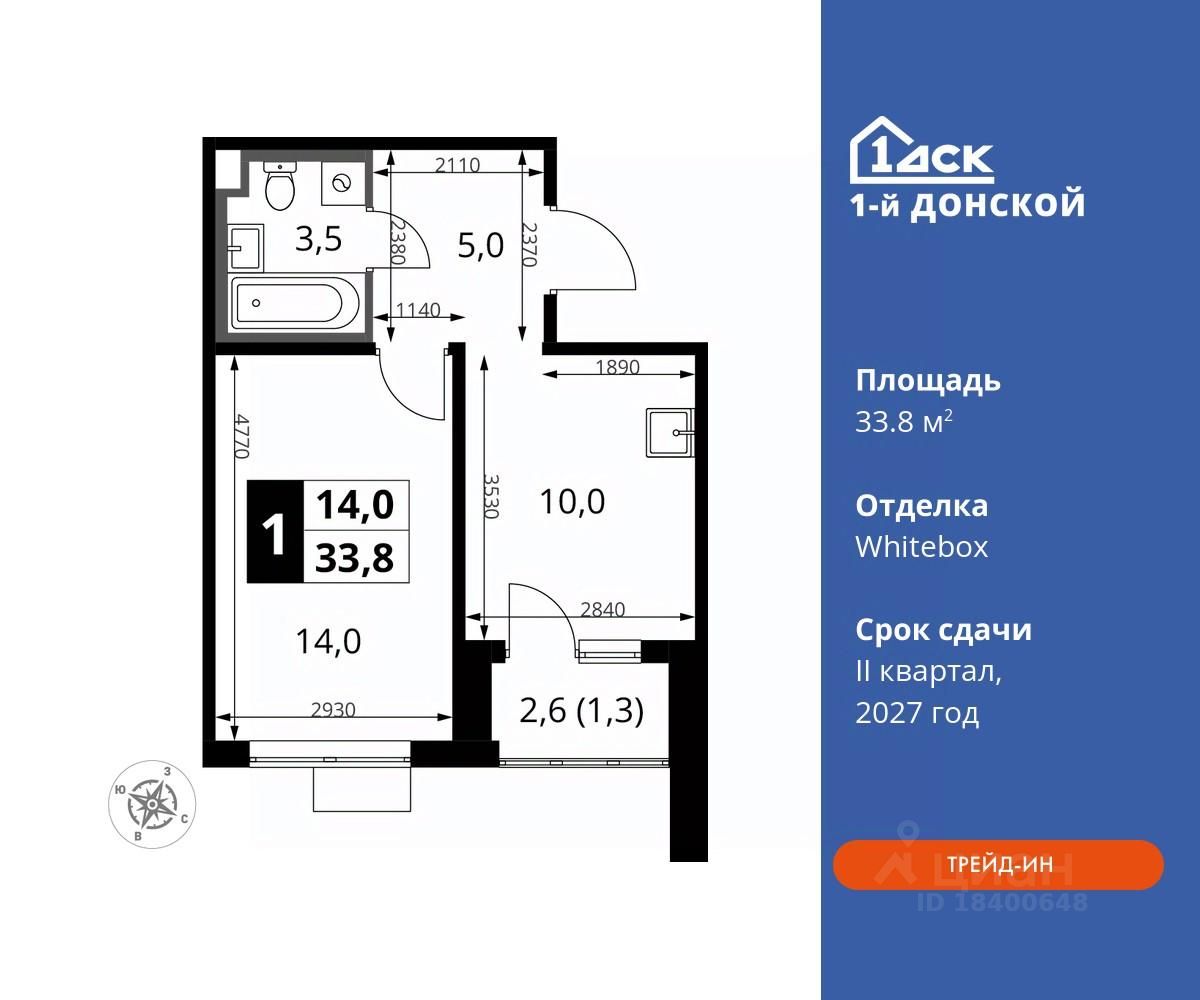 продам 1-к, пр-т-й Донской ЖК, 36 643 728 ₽
