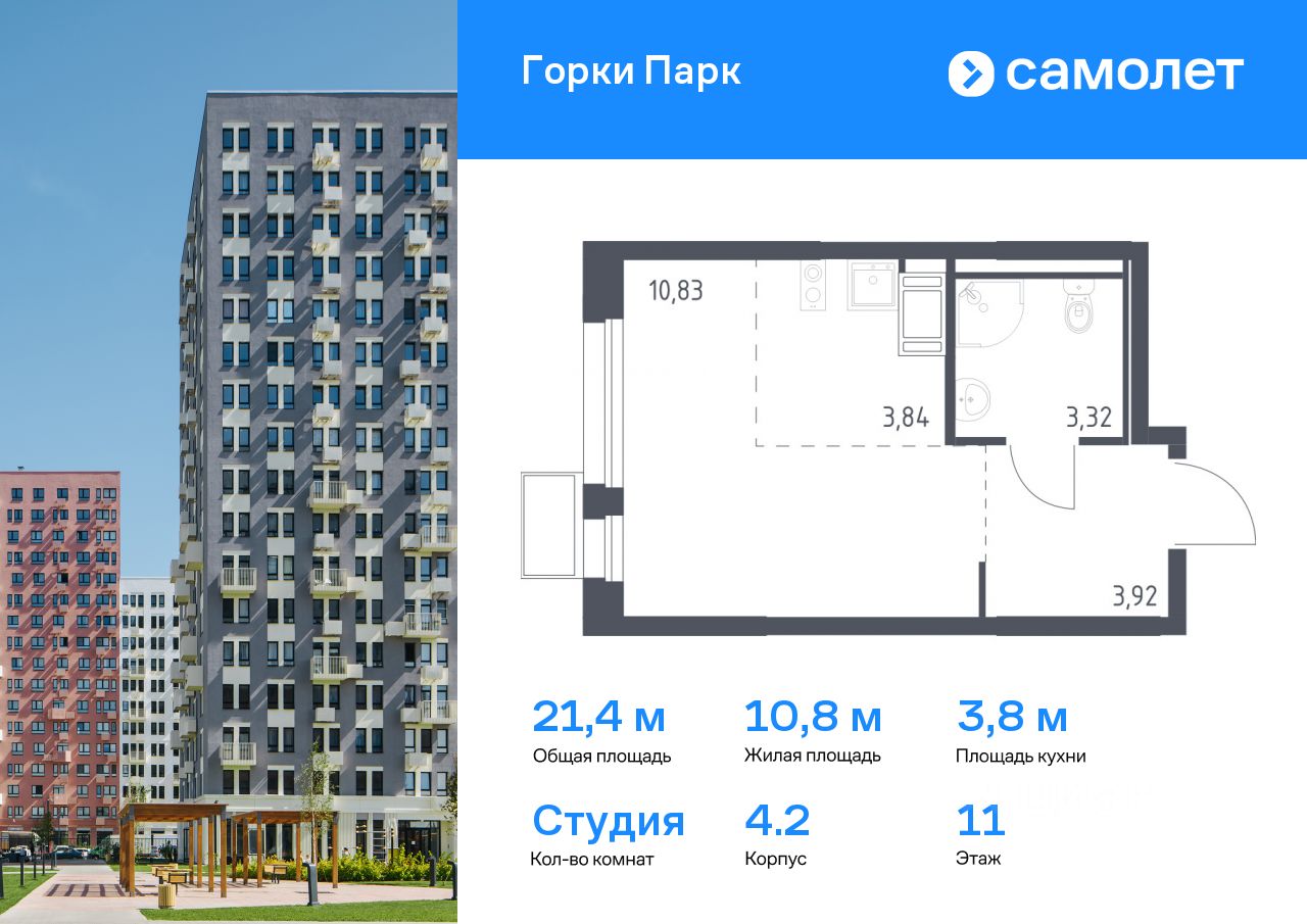 Предлагается квартира студия комфорт-класса 21,4 кв.м в корпусе 4.2 на 11 этаже, в ЖК ''Горки Парк'' Квартира с чистовой отделкой. Доступность дополнительных опций уточняйте у застройщика.