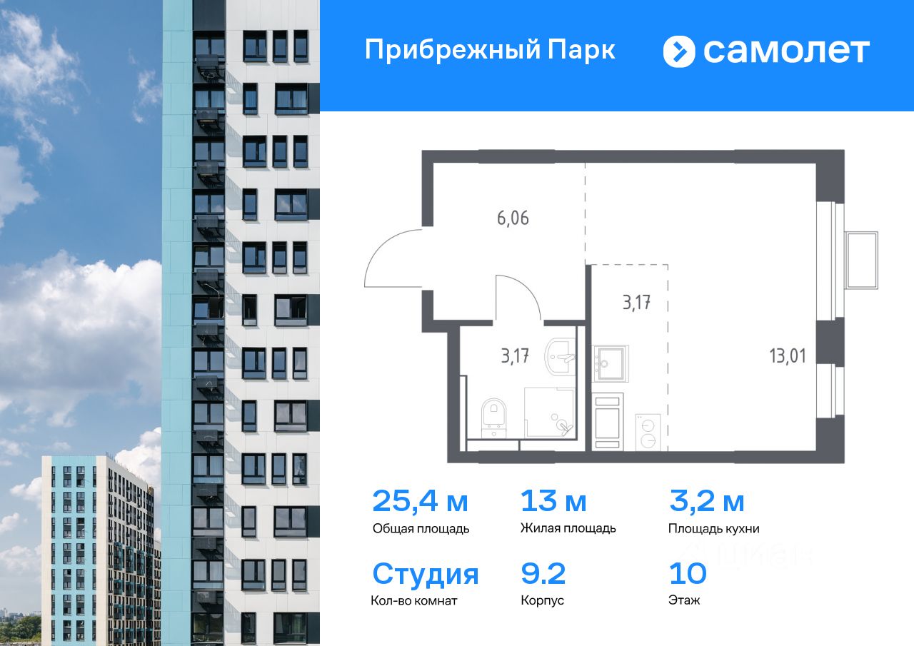 Предлагается квартира студия комфорт-класса 25,4 кв.м в корпусе 9.2 на 10 этаже, в ЖК ''Прибрежный Парк'' Квартира с предчистовой отделкой. Доступность дополнительных опций уточняйте у застройщика.