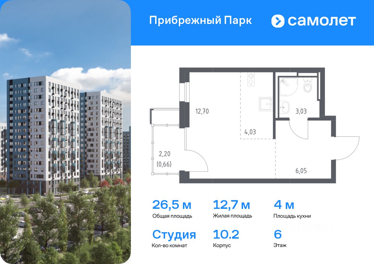 Предлагается квартира студия комфорт-класса 26,47 кв.м в корпусе 10.2 на 6 этаже, в ЖК ''Прибрежный Парк'' Квартира без отделки. Доступность опции ''отделка'' и возможность комплектации мебелью и декором уточняйте у застройщика.