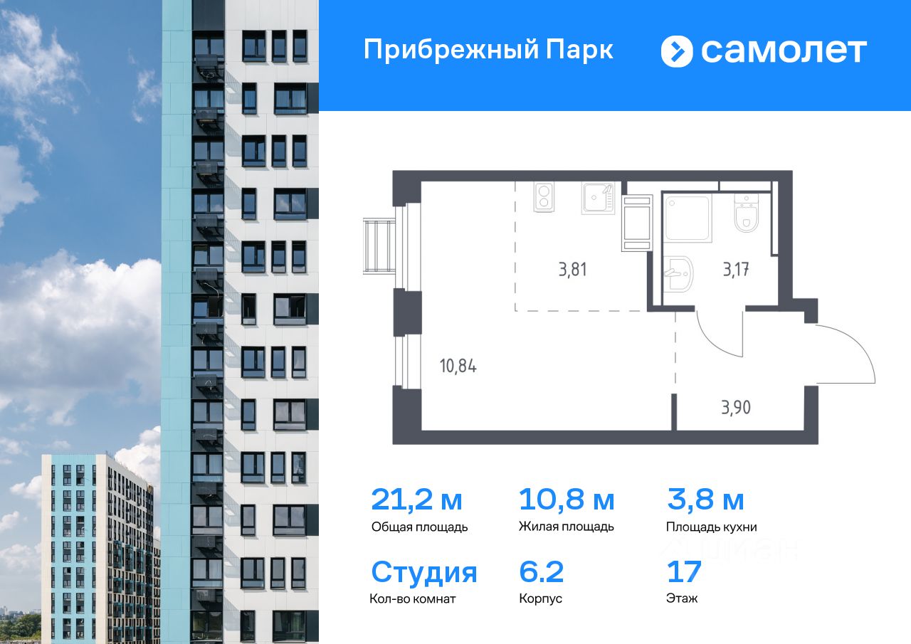 Предлагается квартира студия комфорт-класса 21,2 кв.м в корпусе 6.2 на 17 этаже, в ЖК ''Прибрежный Парк'' Квартира с чистовой отделкой. Доступность дополнительных опций уточняйте у застройщика.