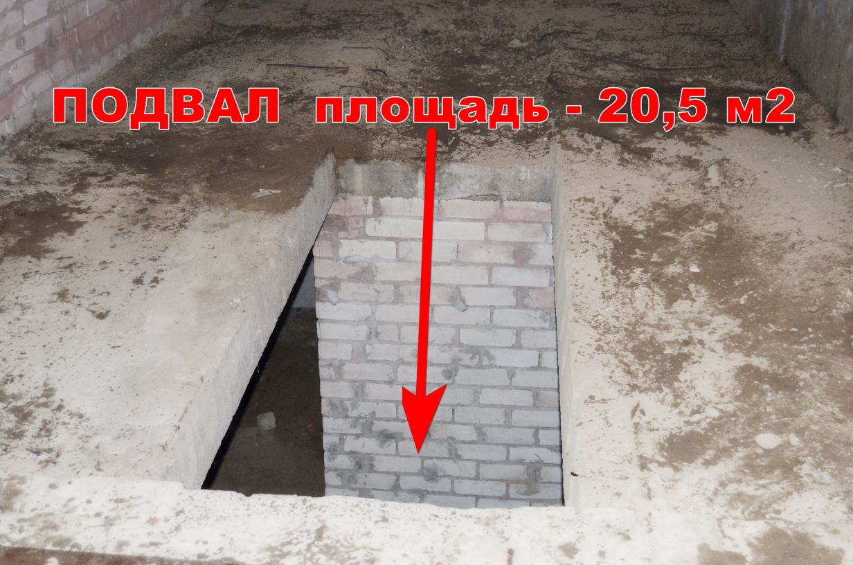 Подвал: 5,6м - длинна, 3,7м - ширина, высота - 2,2м