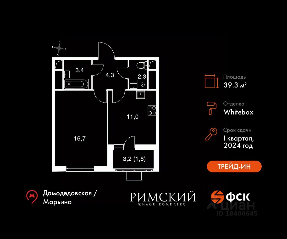 продам 1-к, Римский проезд, 76 921 477 ₽