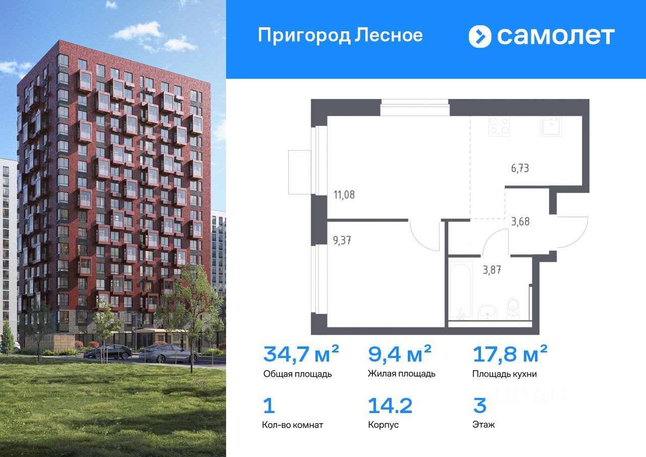 Строим кварталы для жизни с заботой о будущем. Предлагается 1-комнатная квартира комфорт-класса 34,73 кв.м в корпусе 14.2 на 3 этаже, в ЖК ''Пригород Лесное'' Квартира с чистовой отделкой. Доступность дополнительных опций уточняйте у застройщика.