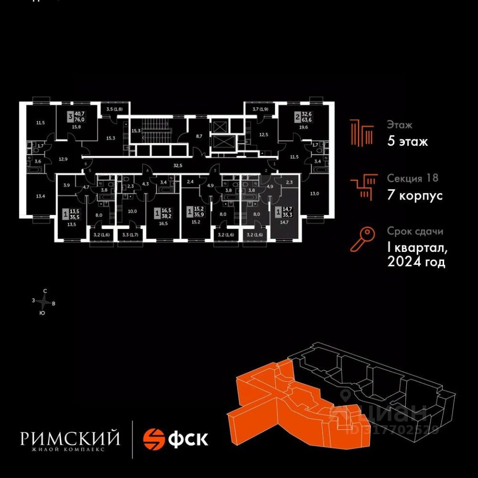 Максимальные скидки при 100% оплате. Готовый дом! Прямая продажа от застройщика! Жилой Комплекс класса Комфорт. Продаётся 1-к квартира номер 1304 в сданном корпусе общей площадью 35.2 кв.м на 5-м этаже 9 этажного дома.