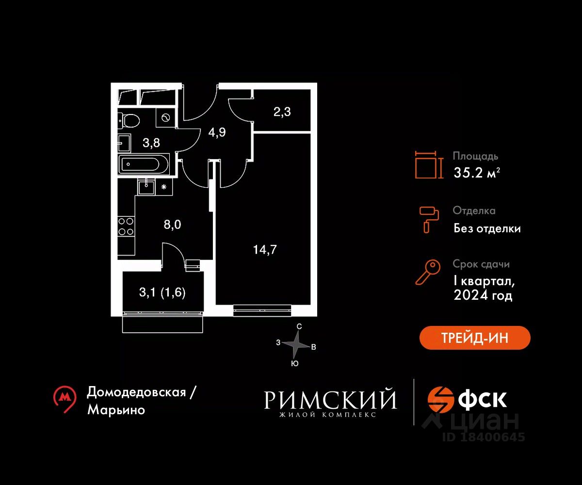 Транспортная доступность: Всего 2 км от МКАД, 15 минут на транспорте до метро ''Домодедовская'' и ''Марьино''