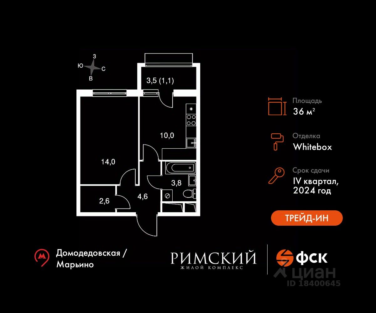 Максимальные скидки при 100% оплате. Готовый дом! Прямая продажа от застройщика! Жилой Комплекс класса Комфорт. Продаётся 1-к квартира номер 639 в сданном корпусе общей площадью 36 кв.м на 5-м этаже 12 этажного дома.