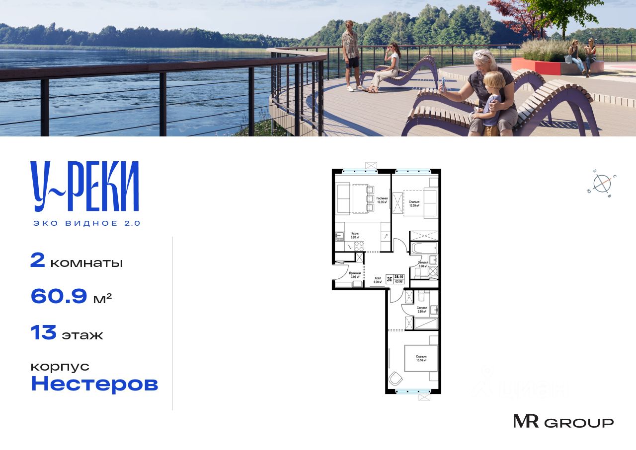 Прямая продажа от застройщика. Продаётся 2-к квартира общей площадью 60.90 кв. м с предчистовой отделкой в ЖК ''У реки. Эко Видное 2.0'' на 13-м этаже корпуса Нестеров. Все корпуса введены в эксплуатацию. Выдача ключей - I кв. 2025г. Жилой комплекс ''У реки'' - уникальный проект комфорт-класса, в котором применяются стандарты строительства и сервиса MR Group, характерные для проектов девелопера бизнес и премиум-классов. 17-этажный корпус ''Нестеров'' расположится на живописном берегу реки Купелинка. Из его квартир откроются захватывающие виды на реку и лес на её противоположном берегу.