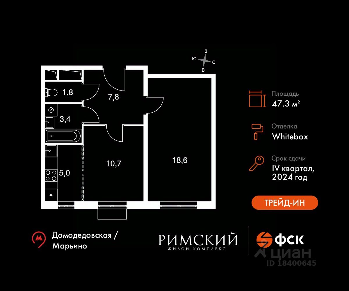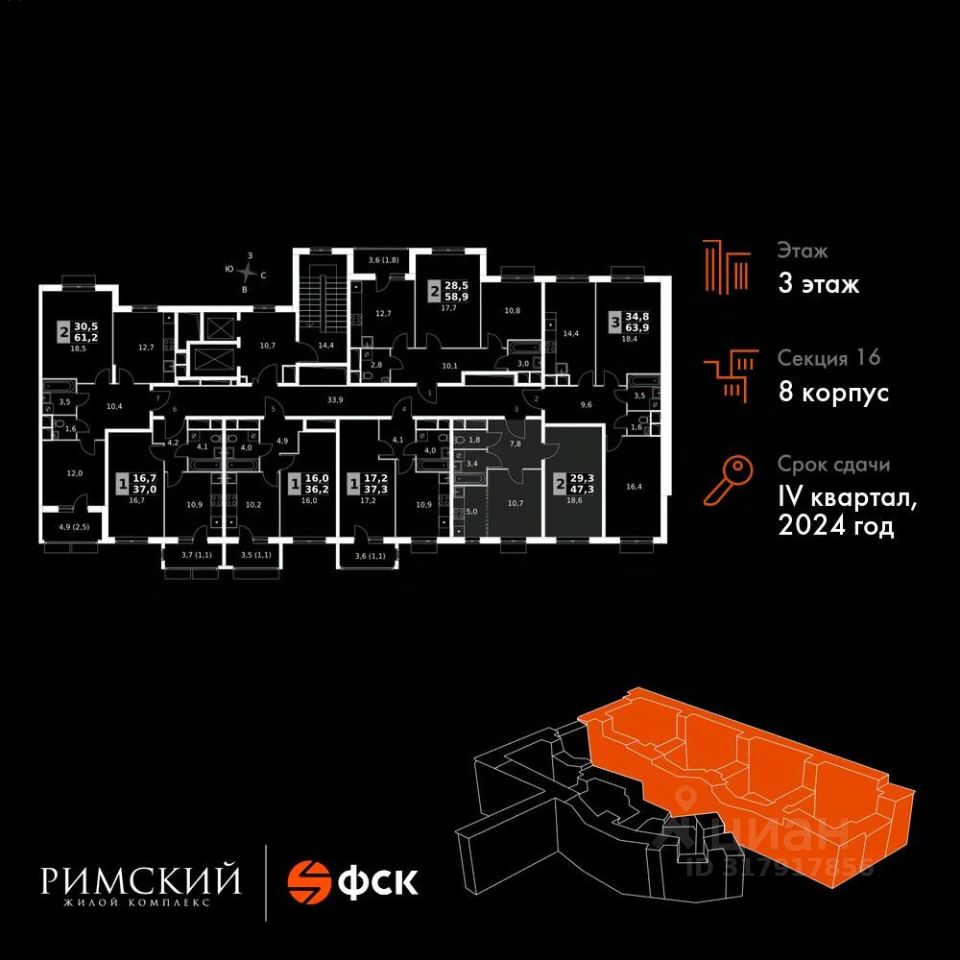 Максимальные скидки при 100% оплате. Готовый дом! Прямая продажа от застройщика! Жилой Комплекс класса Комфорт. Продаётся 2-к квартира номер 960 в сданном корпусе общей площадью 47.3 кв.м на 3-м этаже 15 этажного дома.