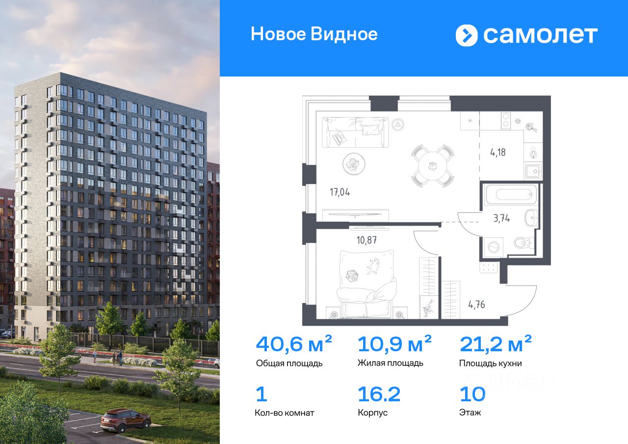 Строим кварталы для жизни с заботой о будущем. Предлагается 1-комнатная квартира комфорт-класса 40,59 кв.м в корпусе 16.2 на 10 этаже, в ЖК ''Новое Видное'' Квартира с чистовой отделкой. Доступность дополнительных опций уточняйте у застройщика.