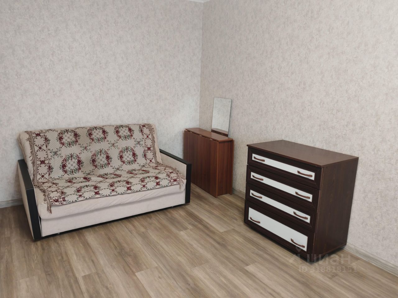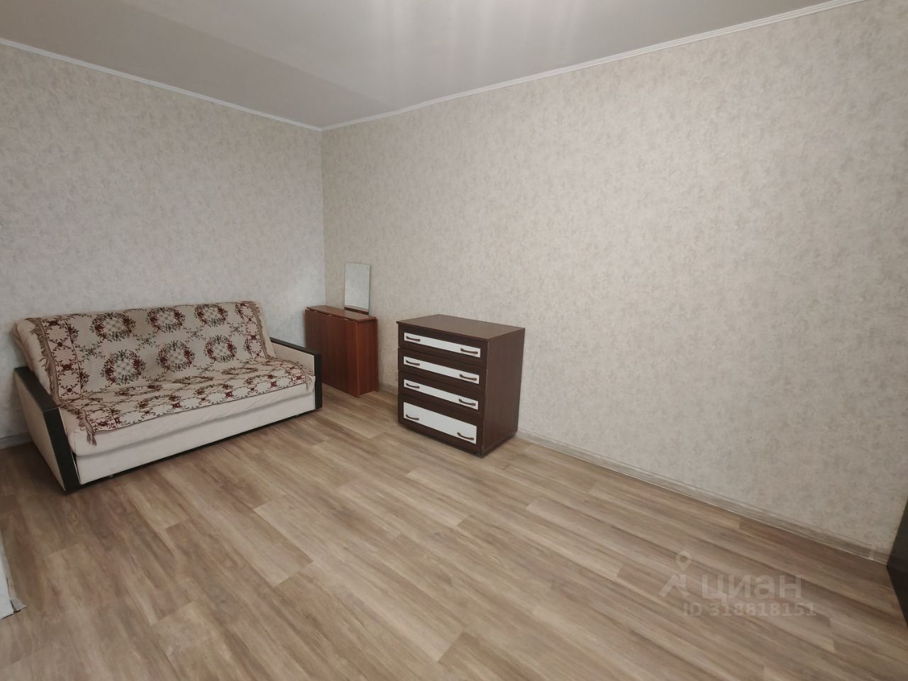 В комнате двуспальный диван, шкаф. Двуспальная кровать куплена, привезут на этой неделе.