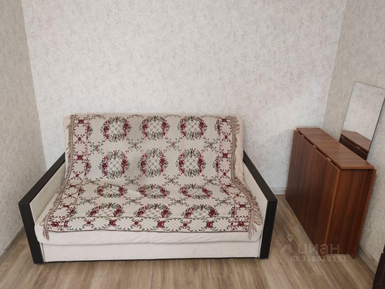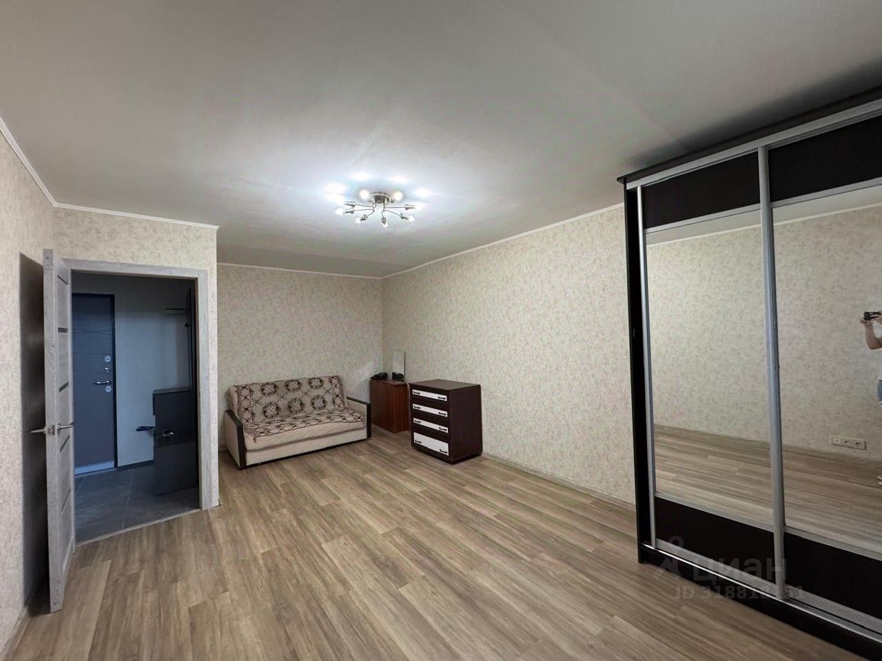 В комнате двуспальный диван, шкаф. Двуспальная кровать куплена, привезут на этой неделе.