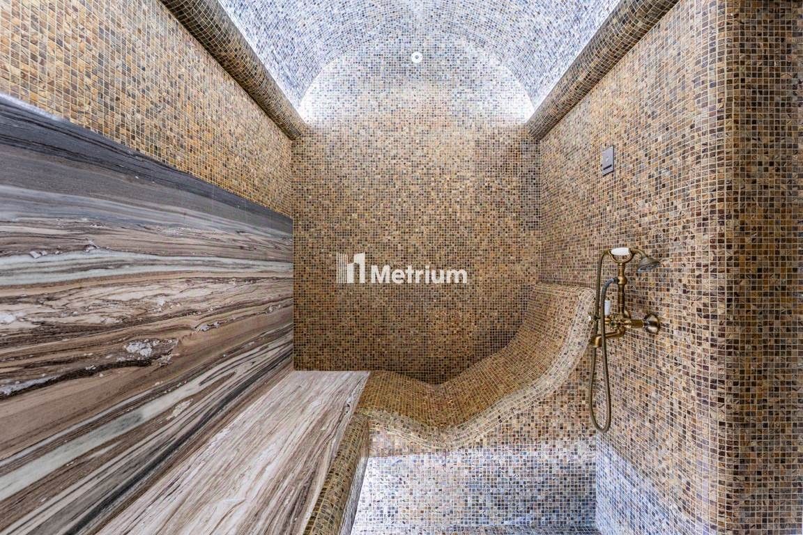 1-й этаж: прихожая, гардеробная, кабинет, гостиная, кухня-столовая, зимний сад с выходом на веранду, с/у, зона спа( хамам, бассейн ), котельная.
