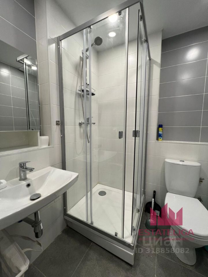 В квартире присутствует вся необходимая для жизни мебель, а также техника. В комнате расположена большой раскладной диван-кровать, рабочая зона с телевизором, барная стойка и стулья и стулья. На кухне имеется гарнитур, электрический чайник, холодильник, микроволновая печь, а также электрическая варочная панель. Имеется удобная гардеробная. Санузел совмещенный с душевой кабиной, есть стиральная машина и пылесос.