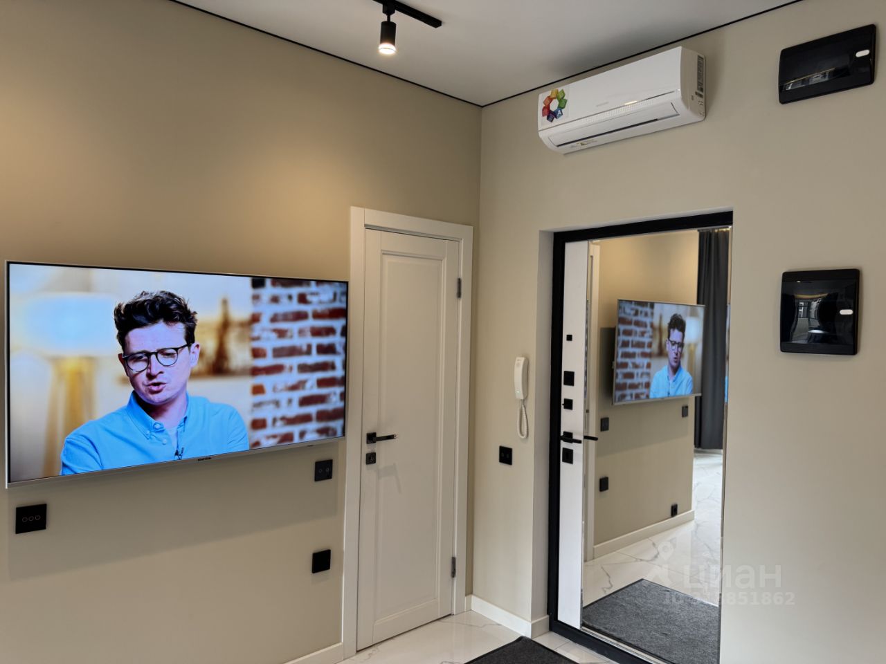 Продается евродвушка, с изолированной спальней и кухней гостиной. Умный дом, теплые полы, электрокарнизы. Стены под покраску, во всей квартире на полу керамогранит, кондиционер, бойлер. Один собственник