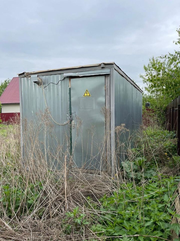 Участок правильной формы, с 4 сторон огорожен металлическим забором, на участке есть жилая бытовка.