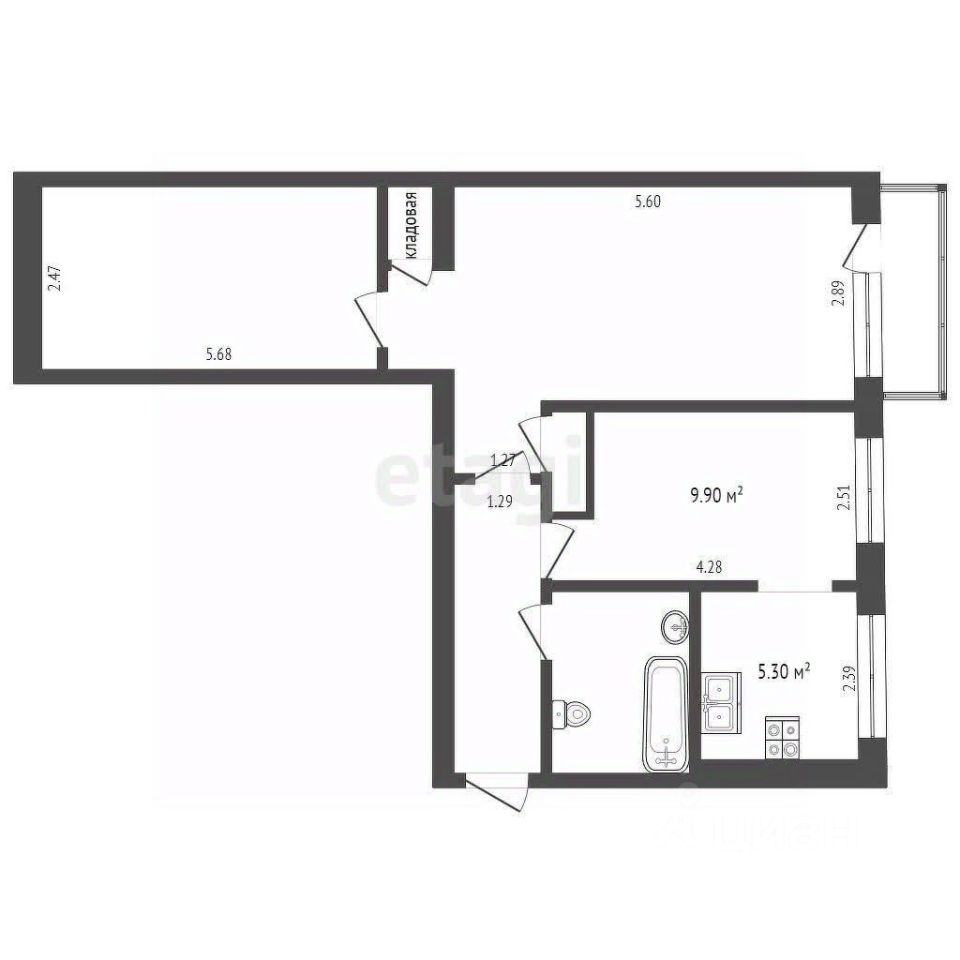 Квартира расположена на 3 этаже. Общая площадь квартиры 58,9 кв.