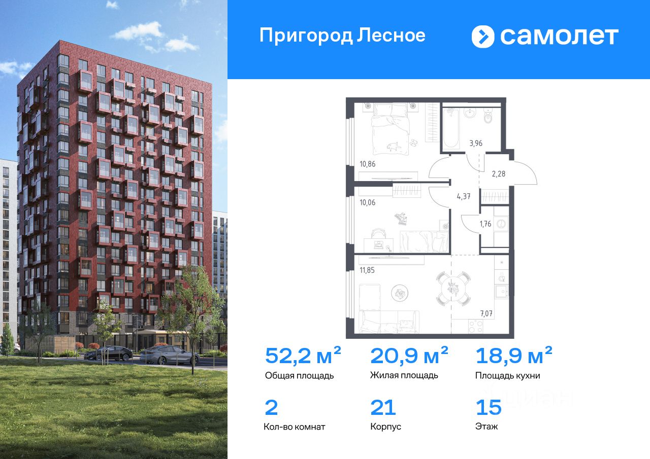 Предлагается 2-комнатная квартира комфорт-класса 52,21 кв.м в корпусе 21 на 15 этаже, в ЖК ''Пригород Лесное'' Квартира без отделки. Доступность опции ''отделка'' и возможность комплектации мебелью и декором уточняйте у застройщика.