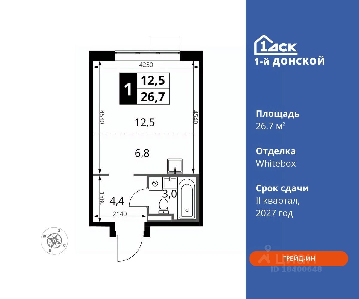 Максимальные скидки при 100% оплате. Trade-in вместо первоначального взноса - выгодно обменяйте вашу квартиру на новую! Прямая продажа от застройщика! Жилой Комплекс класса Комфорт плюс. Продаётся студия номер 181 общей площадью 26.7 кв.м на 18-м этаже 24 этажного дома. Отделка Whitebox.