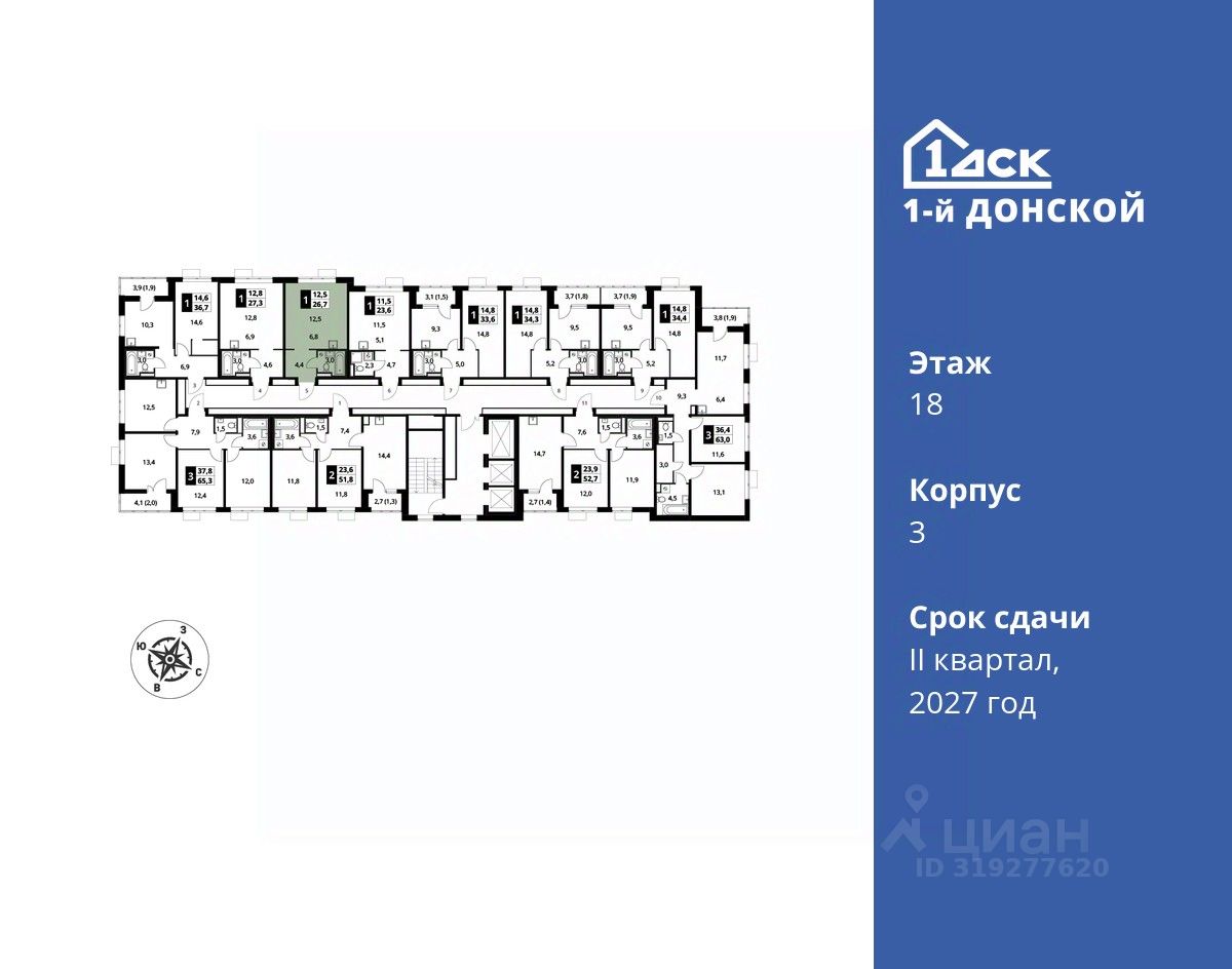 продам 1-к, пр-т-й Донской ЖК, 36 909 960 ₽