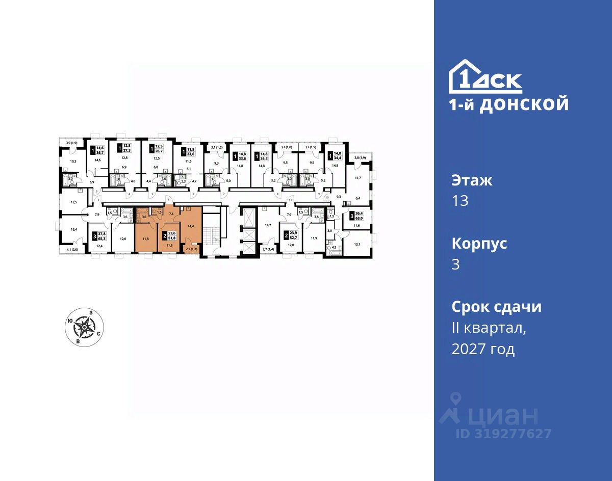продам 2-к, пр-т-й Донской ЖК, 313 084 680 ₽