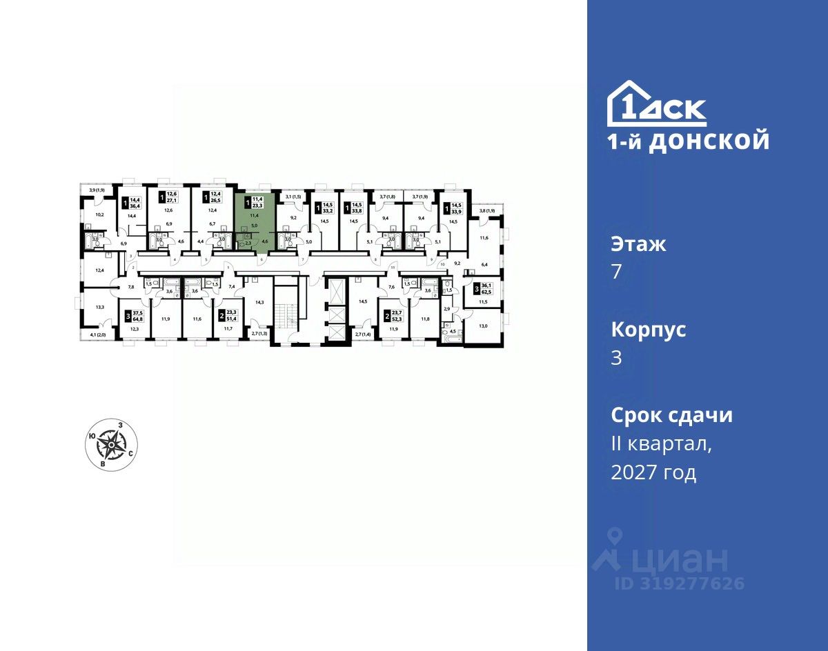 продам 1-к, пр-т-й Донской ЖК, 36 293 330 ₽
