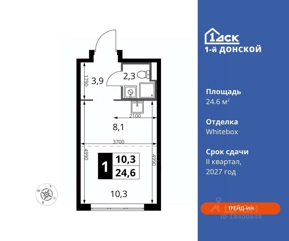 Максимальные скидки при 100% оплате. Trade-in вместо первоначального взноса - выгодно обменяйте вашу квартиру на новую! Прямая продажа от застройщика! Жилой Комплекс класса Комфорт плюс. Продаётся студия номер 741 общей площадью 24.6 кв.м на 2-м этаже 24 этажного дома. Отделка Whitebox.