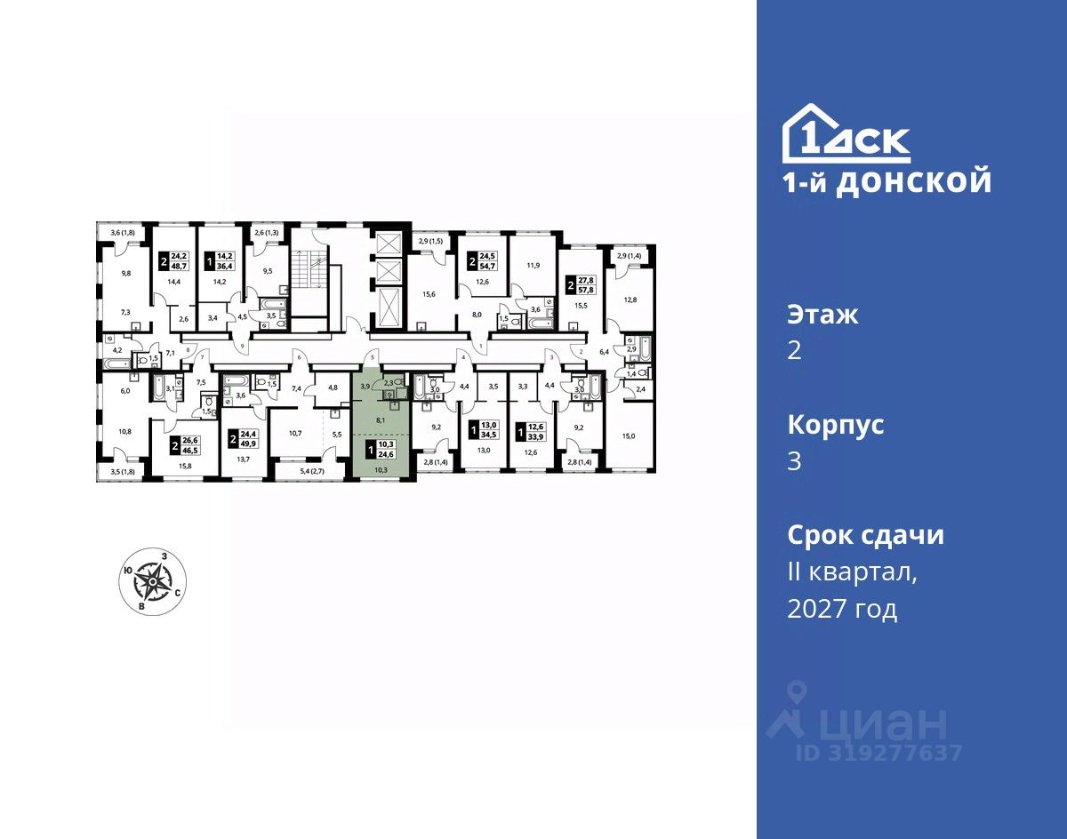 продам 1-к, пр-т-й Донской ЖК, 36 273 000 ₽