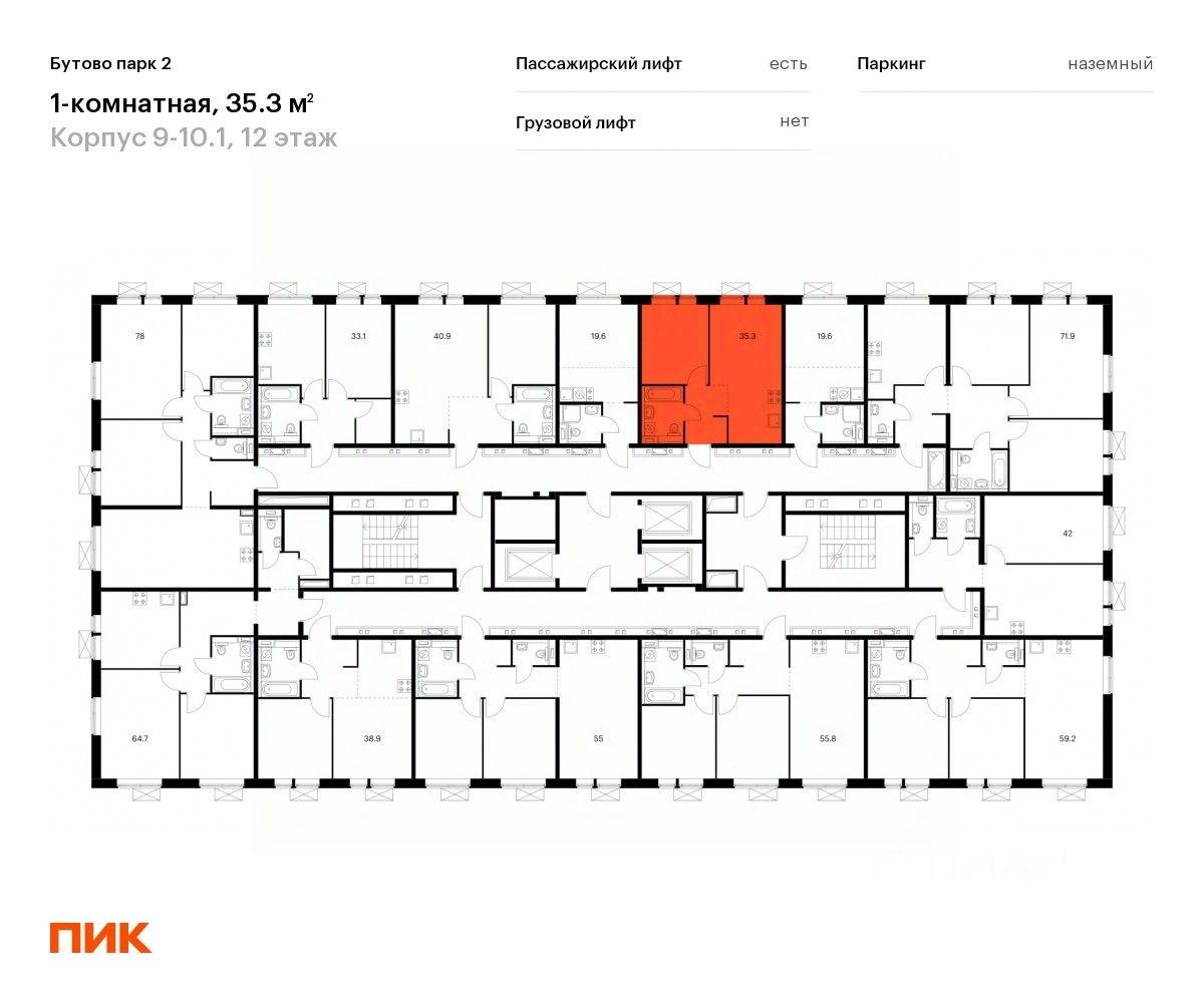 Продаётся 1-комн. квартира площадью 35,3 кв.м на 12 этаже 17 этажного дома (Корпус 9-10.1, Секция 1) проекта ПИК Бутово парк 2. Светлый просторный подъезд на уровне земли, функциональная планировка, большие окна, c отделкой.