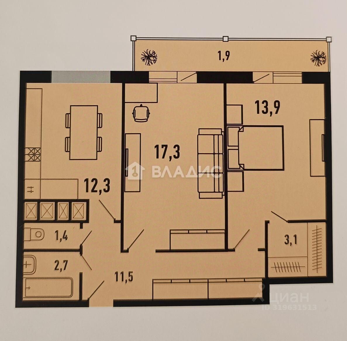В квартире два изолированных жилых помещения, общая и жилая площади составляют 68 кв. м и 32 кв. м соответственно, площадь кухни — 12,3 кв. м. Два балкона позволят вам наслаждаться видами на улицу и свежим воздухом.