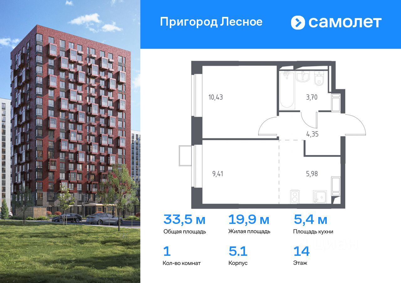 Предлагается 1-комнатная квартира комфорт-класса 33,5 кв.м в корпусе 5.1 на 14 этаже, в ЖК ''Пригород Лесное'' Квартира с чистовой отделкой. Доступность дополнительных опций уточняйте у застройщика.