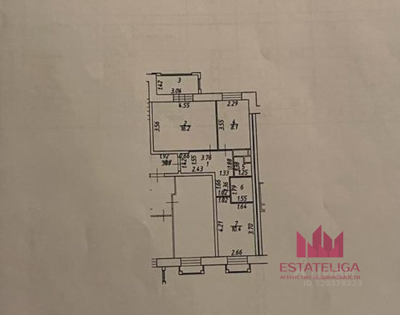 Id 53244. • Двухкомнатная квартира общей площадью 49м²